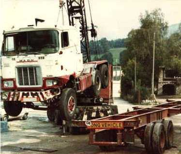We sold the box we had removed from the trailer on behalf of the owner and hitched up our tractor unit to the trailer, and with the Mack unit securely chained down we drove home.